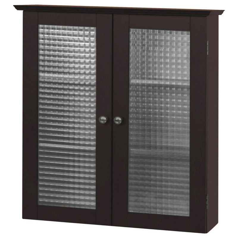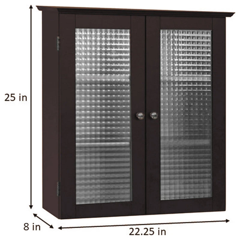 Upgrade your home storage while adding classic decor with the Elegant Home Fashions Chesterfield Wooden Removable Wall Cabinet with 2 Waffle Glass Doors. This decorative cabinet features a sleek espresso finish with a waffle-texture glass door and a double-plated knob for a beautiful addition to your space. The 3 included fixed shelves help to reduce clutter and keep your home tidy. Constructed from durable engineered wood, this wall cabinet is built to provide you with long-lasting organization. Easy, step-by-step instructions and all of the hardware needed are included for quick assembly. Purchase this stylish cabinet alone or with other items from the Chesterfield collection for a cohesive, updated look. The Elegant Home Fashions Chesterfield Wooden Removable Wall Cabinet with 2 Waffle Glass Doors measures 8″ x 22.25″ x 25″ to provide removable storage without taking up too much space in your living area.