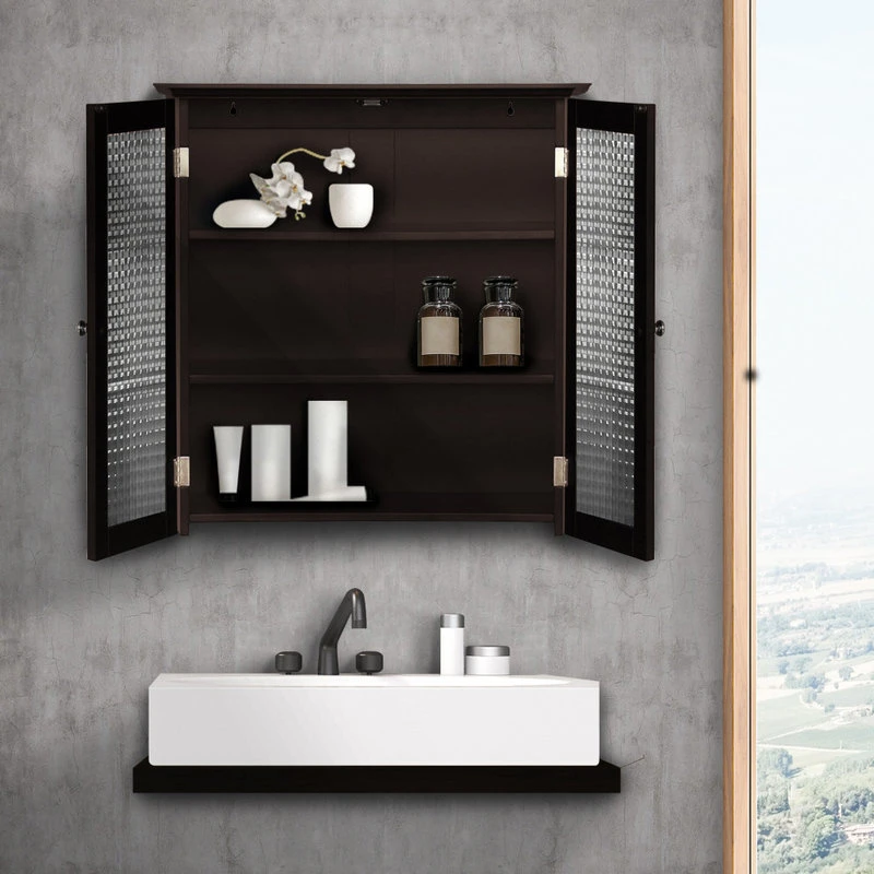 - STYLISH CABINET: Features a sleek espresso finish with 2 waffle-texture glass doors and double-plated knobs for a beautiful addition to your space