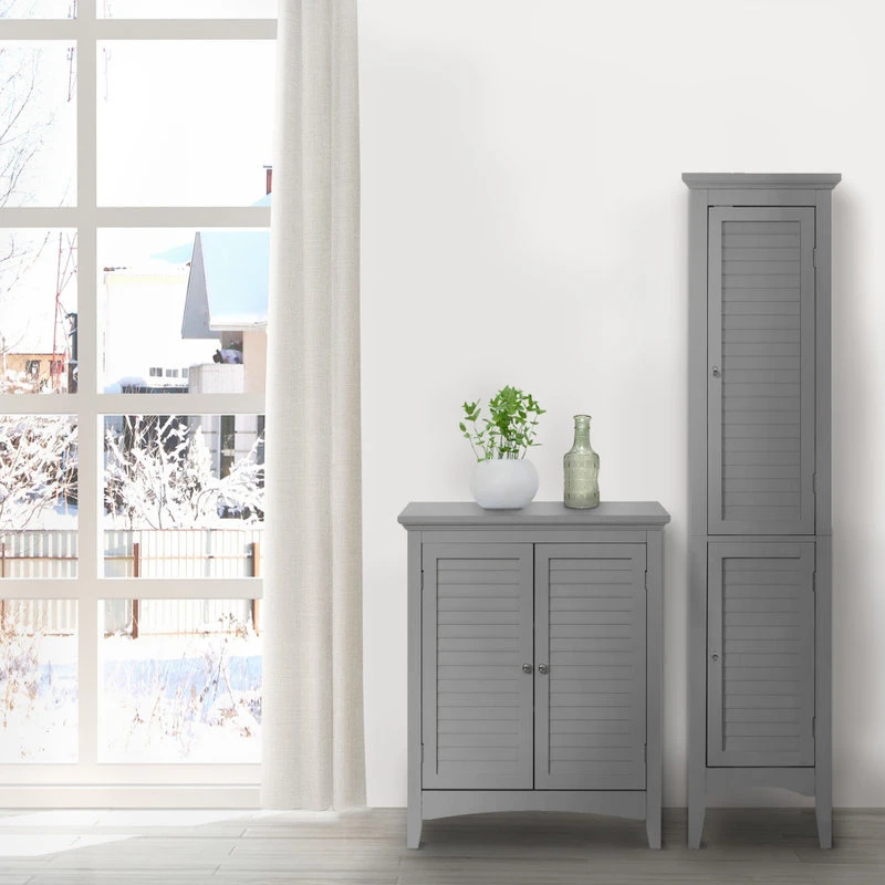 Perfect for small-space bathrooms or living areas, this Glancy Linen Tower solves all your storage woes in style. Two shutter doors and timeless crown molding are given a modern update in a soft gray finish, making Glancy seamlessly accent any room, while five shelves allow you to easily organize any essentials.